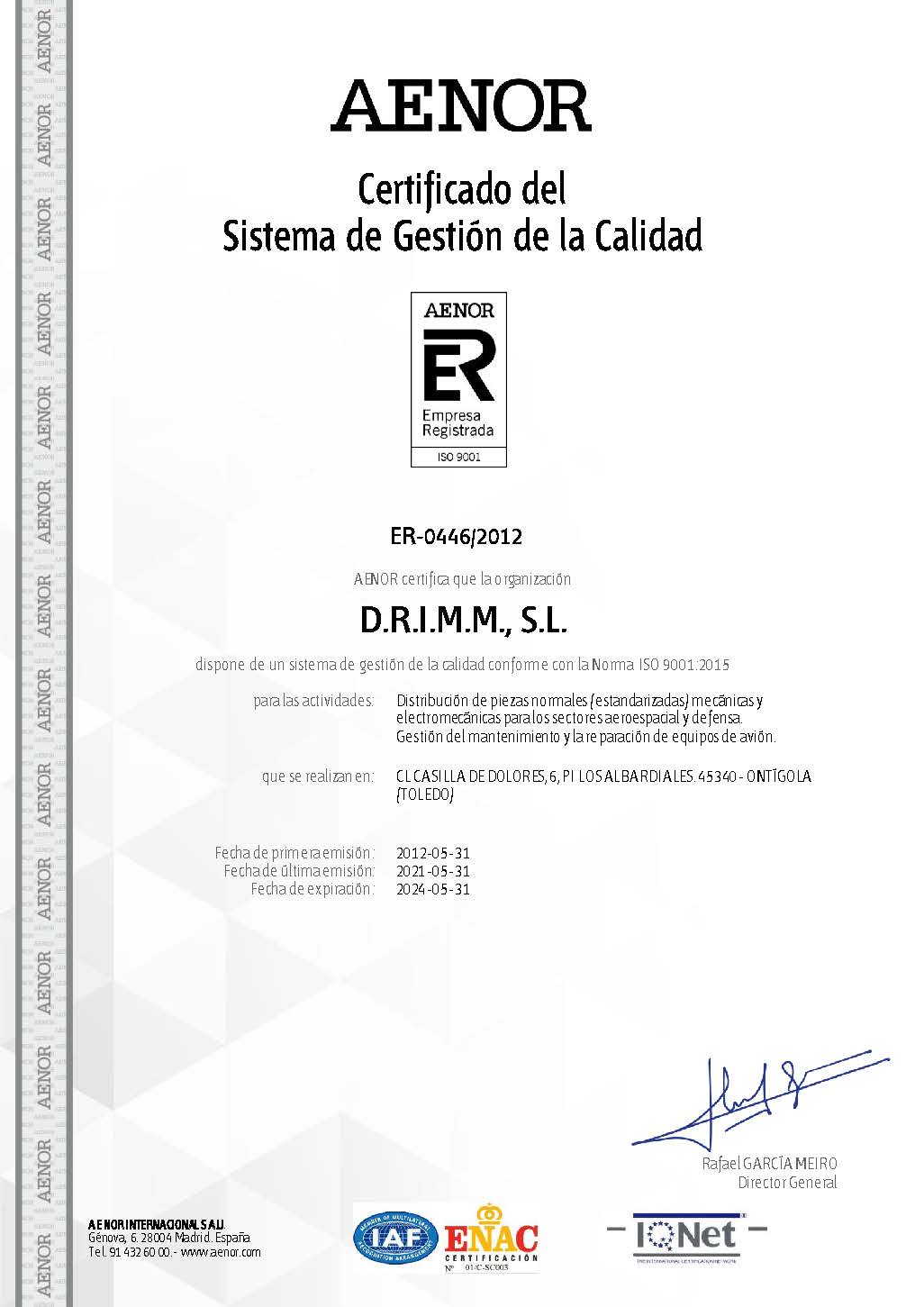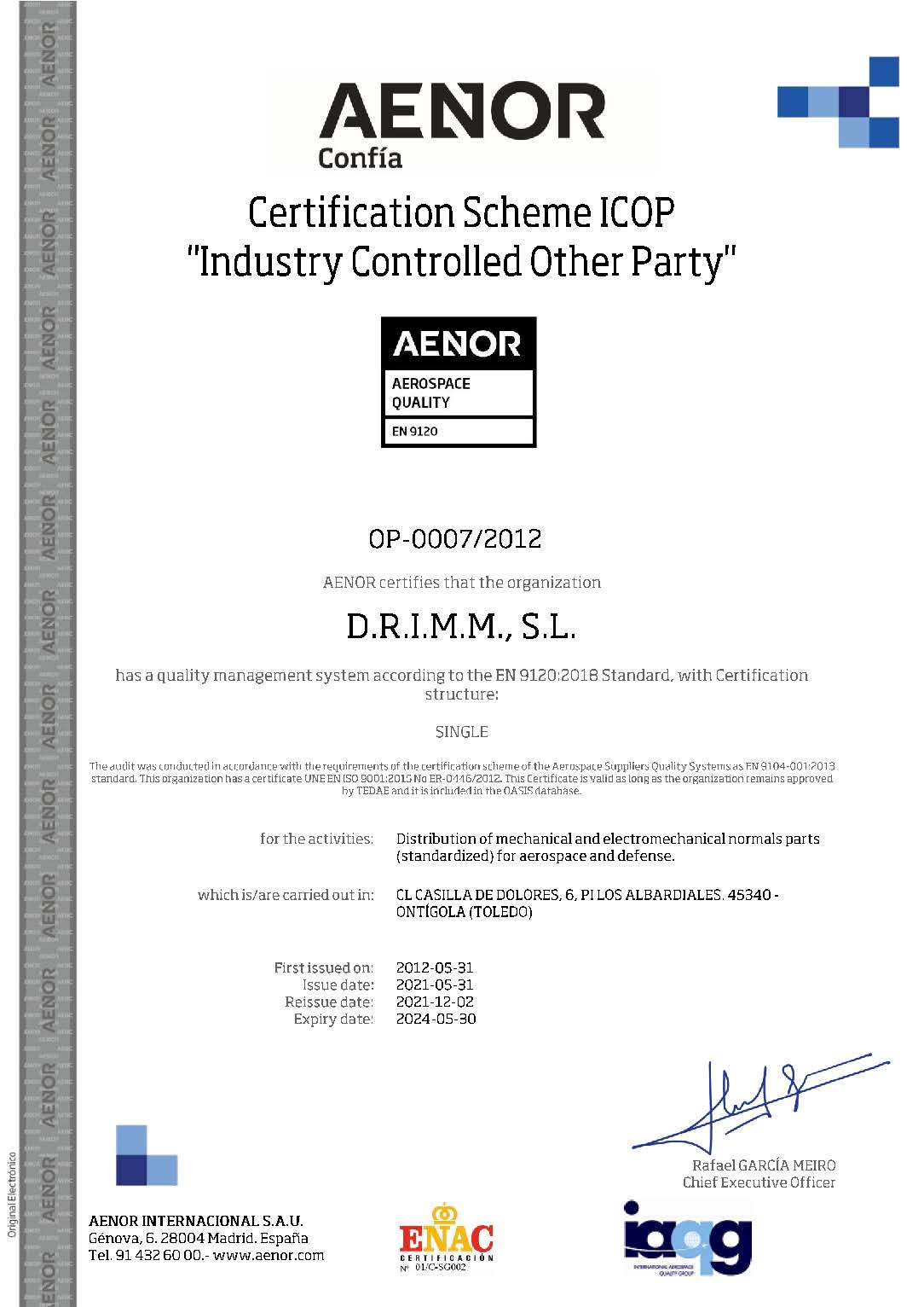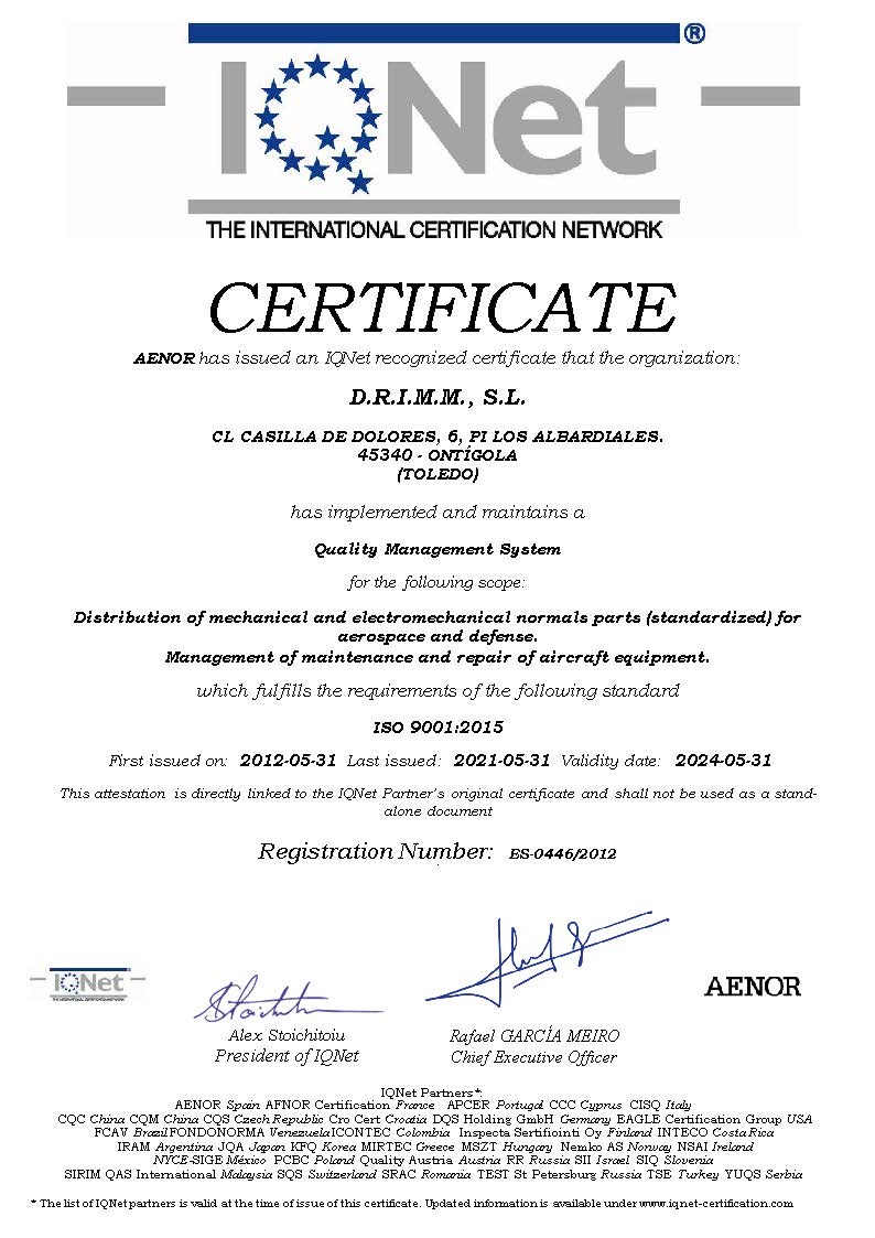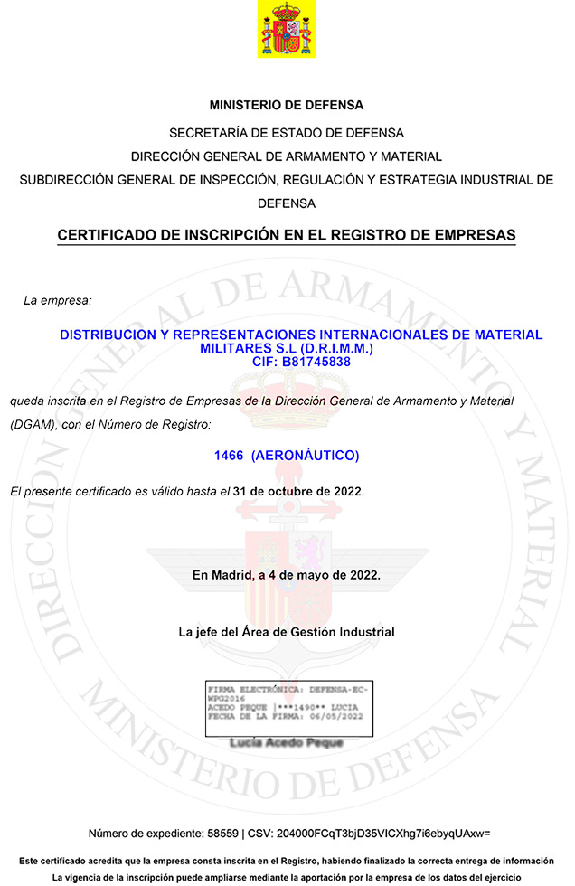 DRIMM S.L. está inscrita en el Registro de Empresas de la Dirección General de Armamento y Material (DGAM), con el Registro nº 1466.